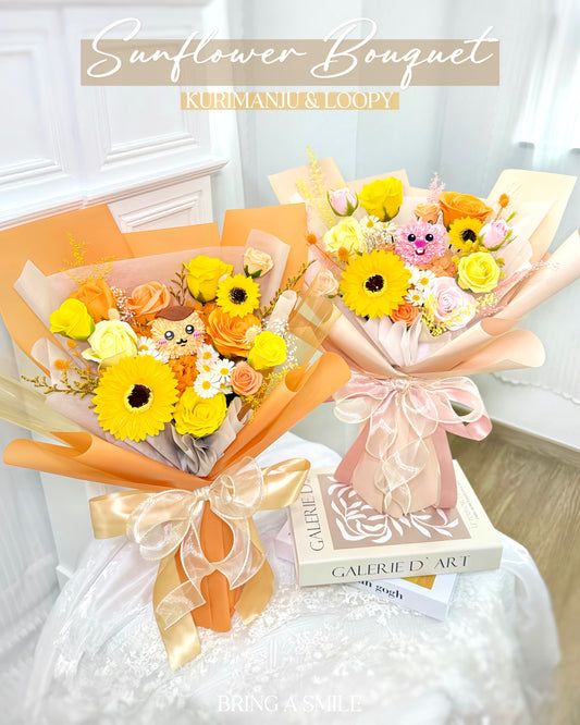粟子饅頭|S黃橙向日葵香皂花x保鮮花花束