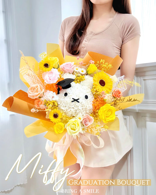 巨型版Miffy|M黃橙向日葵香皂花x保鮮花花束