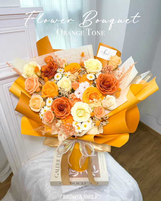 客製貓狗|S淺黃橙香皂花x保鮮花花束