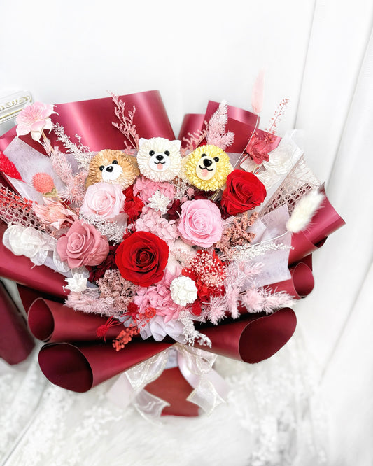 客製竉物狗狗毛孩|M酒紅粉紅保鮮花花束