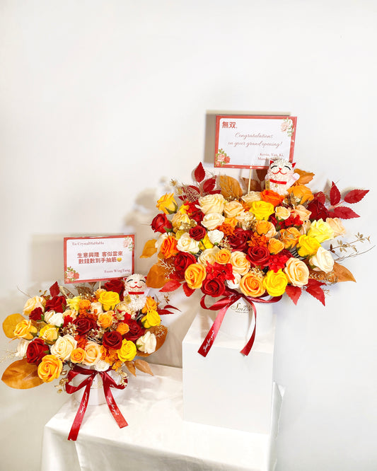 招財貓|紅橙黃金香皂花x保鮮花開張花盒