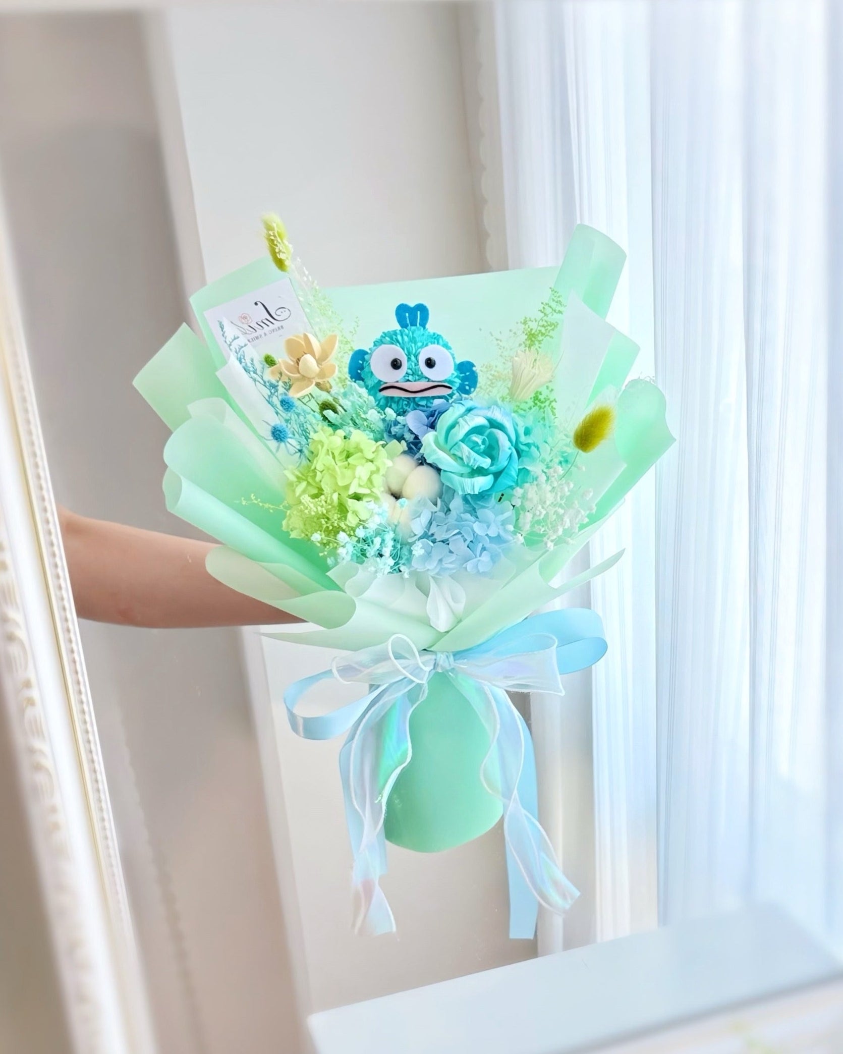 水怪Hangyodon|XS淺綠乾花木棉花束