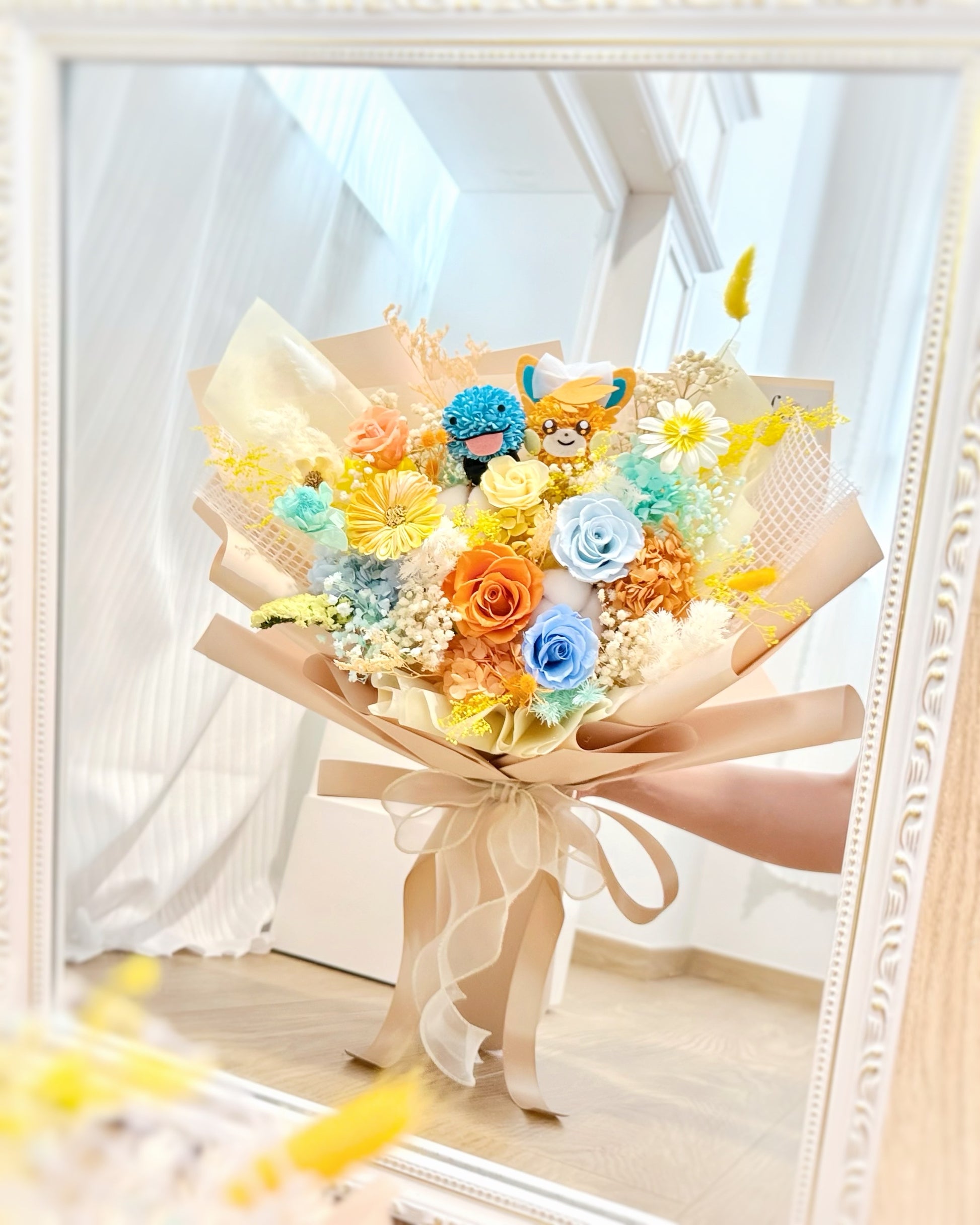 竉物小精靈Pokémon 沼王&巴布土撥|卡其黃橙藍保鮮花花束
