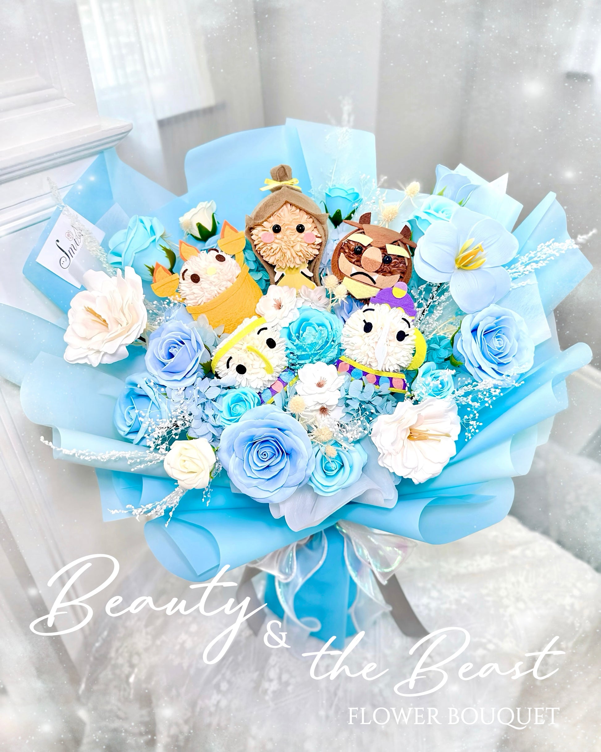 Beauty and the Beast美女與野獸主題|M淺藍白香皂花x保鮮花花束