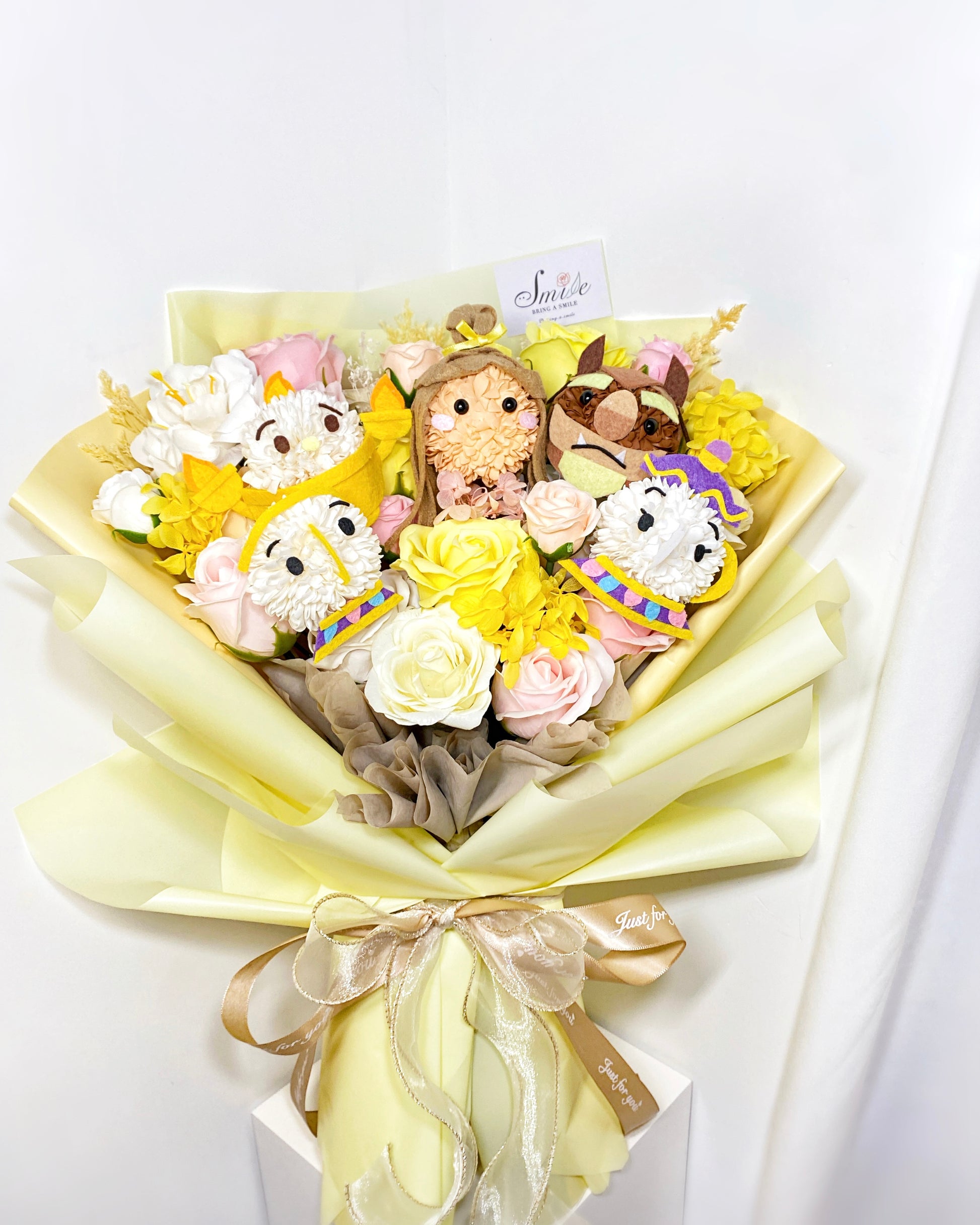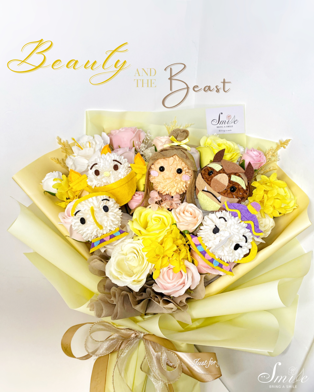 美女與野獸主題|M淺黃粉香皂花x保鮮花花束