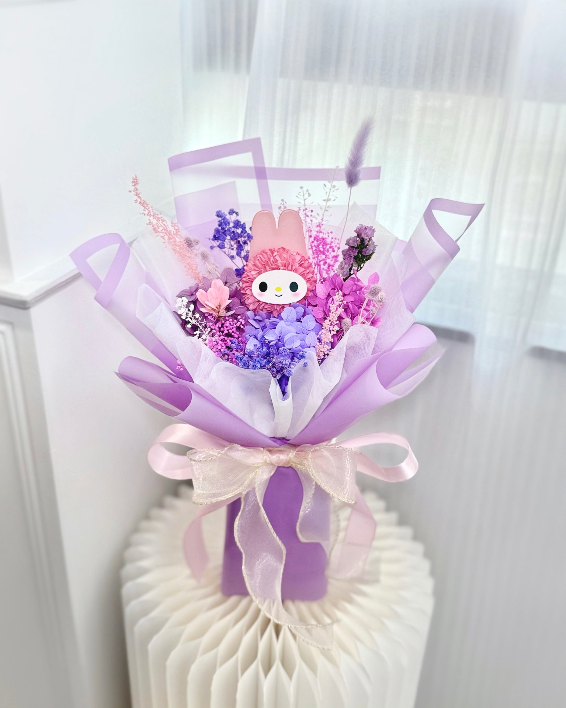 迷你公仔造型花束 (客製公仔花 及 保鮮花襯花)